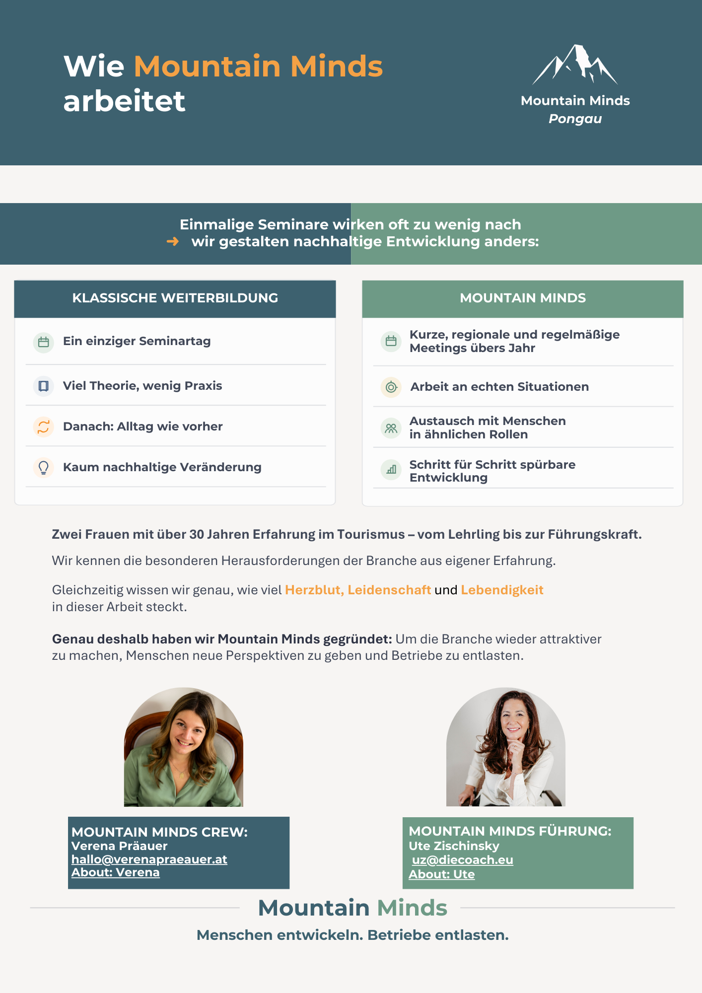 Mountain Minds setzt genau hier an: Mit einem regionalen Entwicklungsprogramm, das Mitarbeitende stärkt und Führungskräften die Klarheit gibt, die sie brauchen, um souverän zu führen: praxisnah und kontinuierlich.